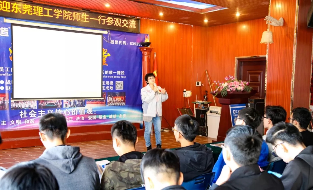 隨后,蔣明華在公司大會議室向師生們詳細介紹了公司的發(fā)展歷程、產(chǎn)品特點、核心優(yōu)勢、企業(yè)文化、人力資源、員工晉升通道等方面的概況,并熱忱歡迎東莞理工學(xué)院學(xué)子來公司參觀,更歡迎畢業(yè)的大學(xué)生來公司就業(yè)。