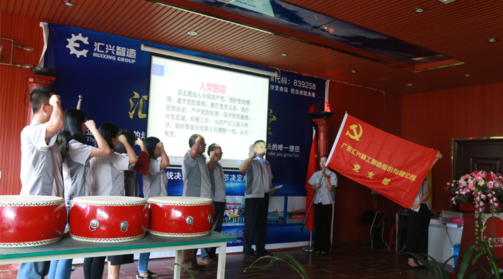 在大會上,匯興智造黨支部全體黨員上臺宣誓,重溫《入黨誓詞》,由匯興智造總工程師許光輝教授領(lǐng)誓,其余黨員們跟誓。在這莊嚴(yán)神圣的時刻,全體黨員表達了對中國共產(chǎn)黨的忠誠和信念。