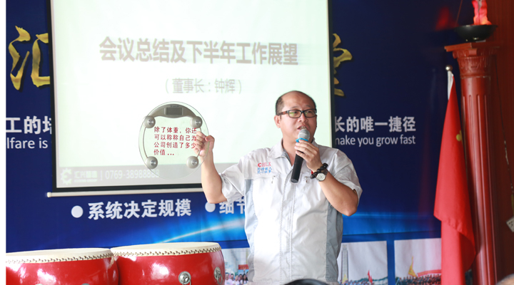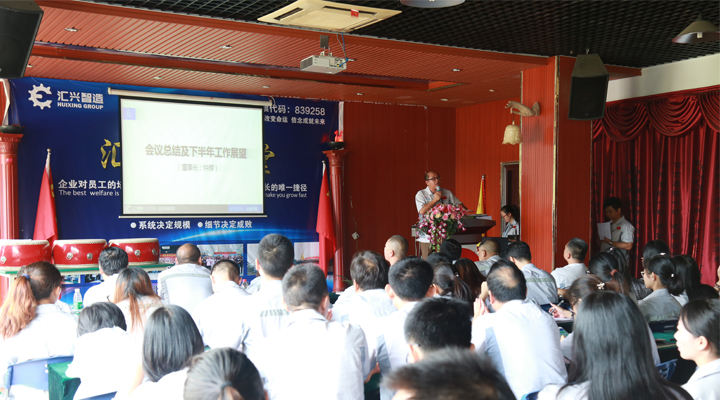 最后,由鐘輝董事長作會議總結(jié)及下半年的工作展望?;厥咨习肽辏?jīng)過全體匯興人的共同努力,匯興智造的業(yè)績趕超去年一年,并再次交出了亮眼的成績單,以“優(yōu)等生”的身份成功晉級到新三板的創(chuàng)新層,這對公司未來的發(fā)展,特別是沖刺更高的資本巿場有著重要而深遠的意義。作為植根于大嶺山的本土民營企業(yè),十七年來勤勤勉勉,絲毫不曾懈怠,也感恩大嶺山鎮(zhèn)這片熱土和好的營商環(huán)境,眾多領(lǐng)導(dǎo)干部、學(xué)者專家多次蒞臨匯興智造參觀調(diào)研和指導(dǎo),給匯興智造的發(fā)展建言獻策,增光添彩。匯興智造作為大嶺山鎮(zhèn)市級“倍增計劃”試點企業(yè),也是東莞市知識產(chǎn)權(quán)重點保護企業(yè),新近又被獲評為“2016年度廣東省守合同重信用單位”。今年五月份,企業(yè)倍增辦順勢成立,匯興智造力爭在兩年內(nèi),狠抓業(yè)績,推動企業(yè)實現(xiàn)規(guī)模倍增、效益倍增、納稅倍增,一切以結(jié)果為導(dǎo)向,所有匯興人定以鐵一般的信仰,鐵一般的信念,鐵一般的紀(jì)律,鐵一般的擔(dān)當(dāng)、朝著既定的目標(biāo)奮勇前進。