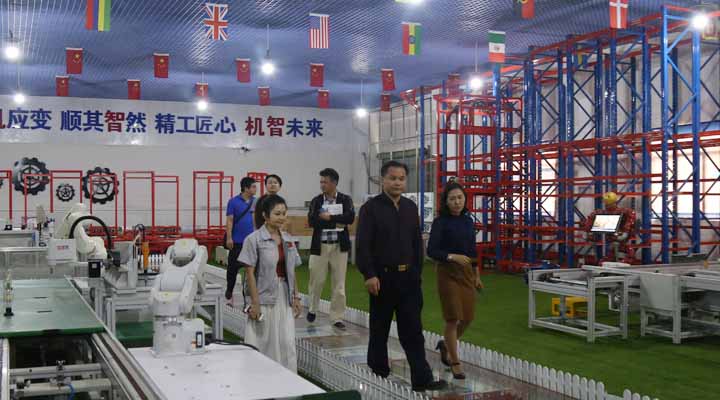 上市辦辛主任給王部長(zhǎng)介紹匯興智造工業(yè)4.0體驗(yàn)館