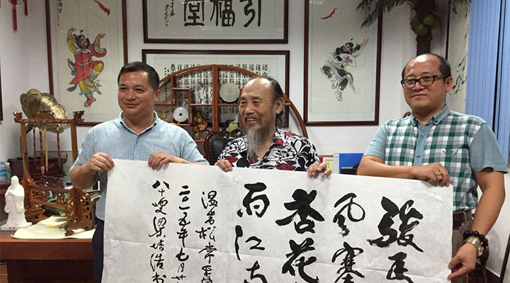 7月28日晚22點(diǎn),興國縣委常委副縣長溫巖松,方太鄉(xiāng)黨委書記江華,水利局局長王捷等一行七人蒞臨我司指導(dǎo),秋風(fēng)塞上比擬著溫副縣長的遠(yuǎn)程走訪,像春雨滋養(yǎng)著大地,匯利興集團(tuán)(現(xiàn)更名:廣東匯興精工智造股份有限公司,簡稱:匯興智造)董事長鐘輝陪同,邂逅到訪的嶺南畫派泰斗梁培浩教授,并與梁老進(jìn)行深刻的藝術(shù)交流。