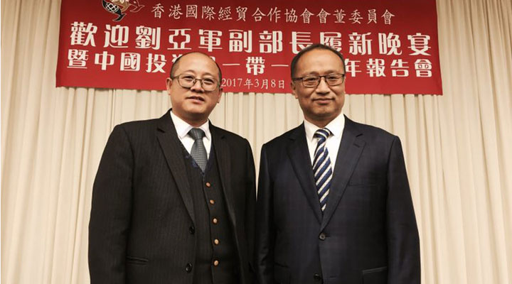 201738日,匯興智造董事長(zhǎng)鐘輝受邀參加由香港國(guó)際經(jīng)貿(mào)合作協(xié)會(huì)會(huì)董委員會(huì)在港島陽(yáng)明山莊舉辦的“歡迎劉亞軍副部長(zhǎng)履新晚宴暨中國(guó)投資與一帶一路新年報(bào)告會(huì)”。