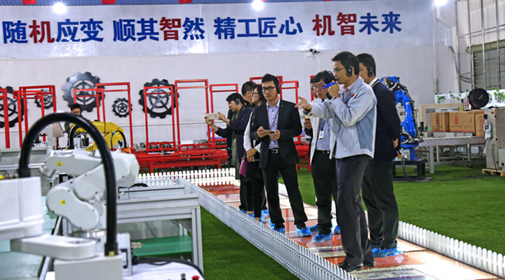 2017年1月3日,天安數(shù)碼城總建筑師李永凱一行到訪匯興智造交流學(xué)習(xí),董事長特助柯火炎對他們的到來表示熱烈的歡迎,并親自帶領(lǐng)參觀了開館不久的工業(yè)4.0體驗館,介紹了匯興智造“順其‘智’然”、機‘智’未來”的設(shè)計理念,如何打造源于自然、貼近生活的智能工廠,聽了柯秘的介紹,李永凱建筑師表示深度的認(rèn)同:在這里,我看到的不是鋼筋、水泥、混凝土,而是藍天、白云、綠草、小橋、流水、木屋、石柱……這里就是工業(yè)文明源于自然的生動寫照。